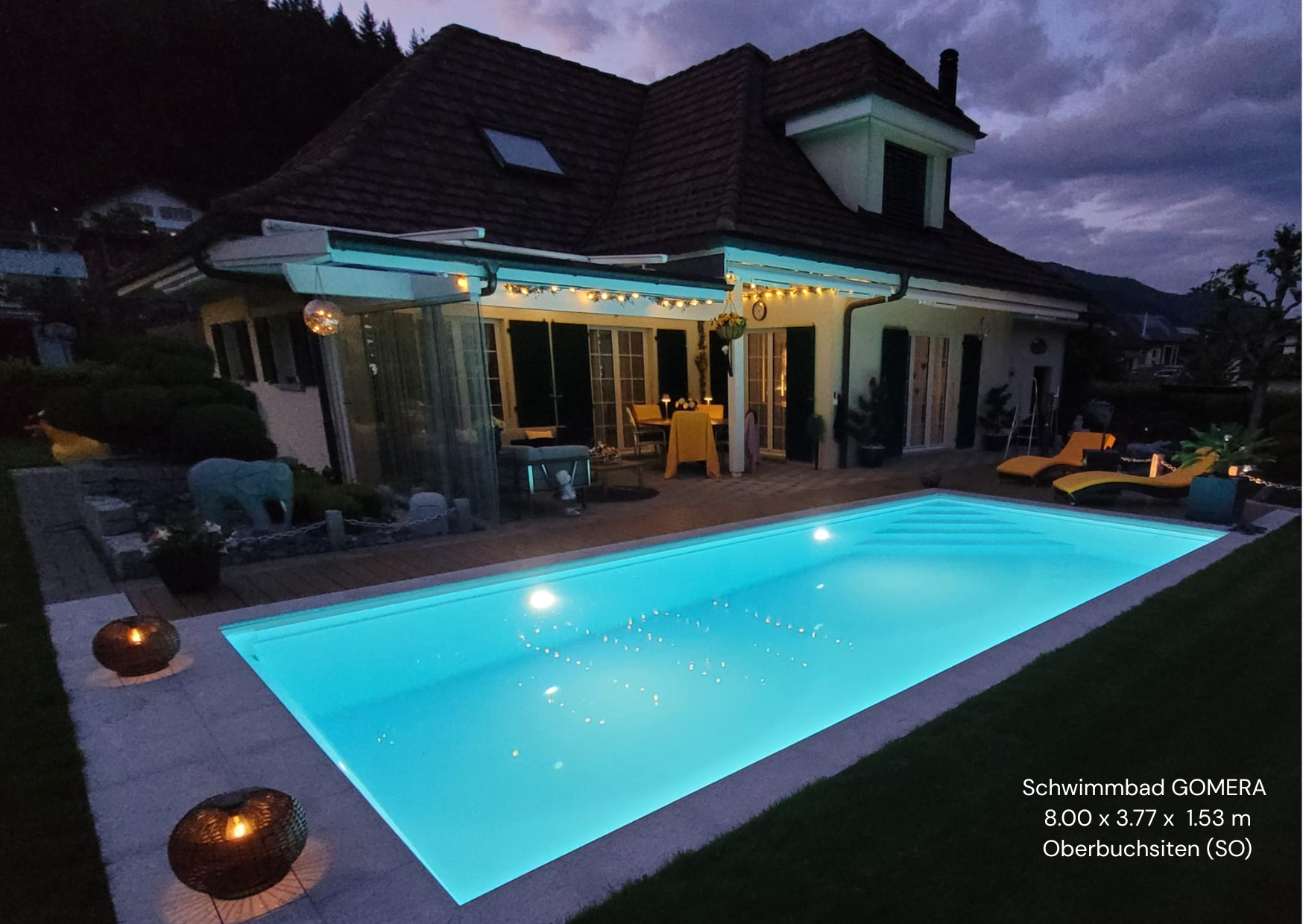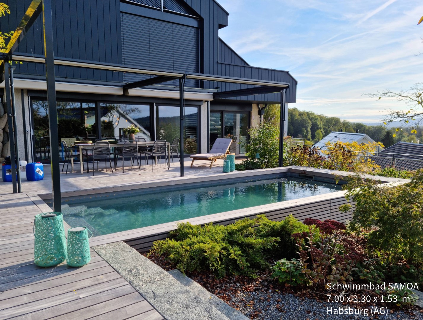 Wir begleiten Sie Schritt für Schritt: Vom Baugesuch über den Aushub, das Erstellen der Bodenplatte und die Hinterfüllung des Beckens bis hin zur Installation der Technik – alle Arbeiten werden durch unser eingespieltes Team erledigt. Für Sie bedeutet das: Ein Ansprechpartner, klare Abläufe und maximale Transparenz.