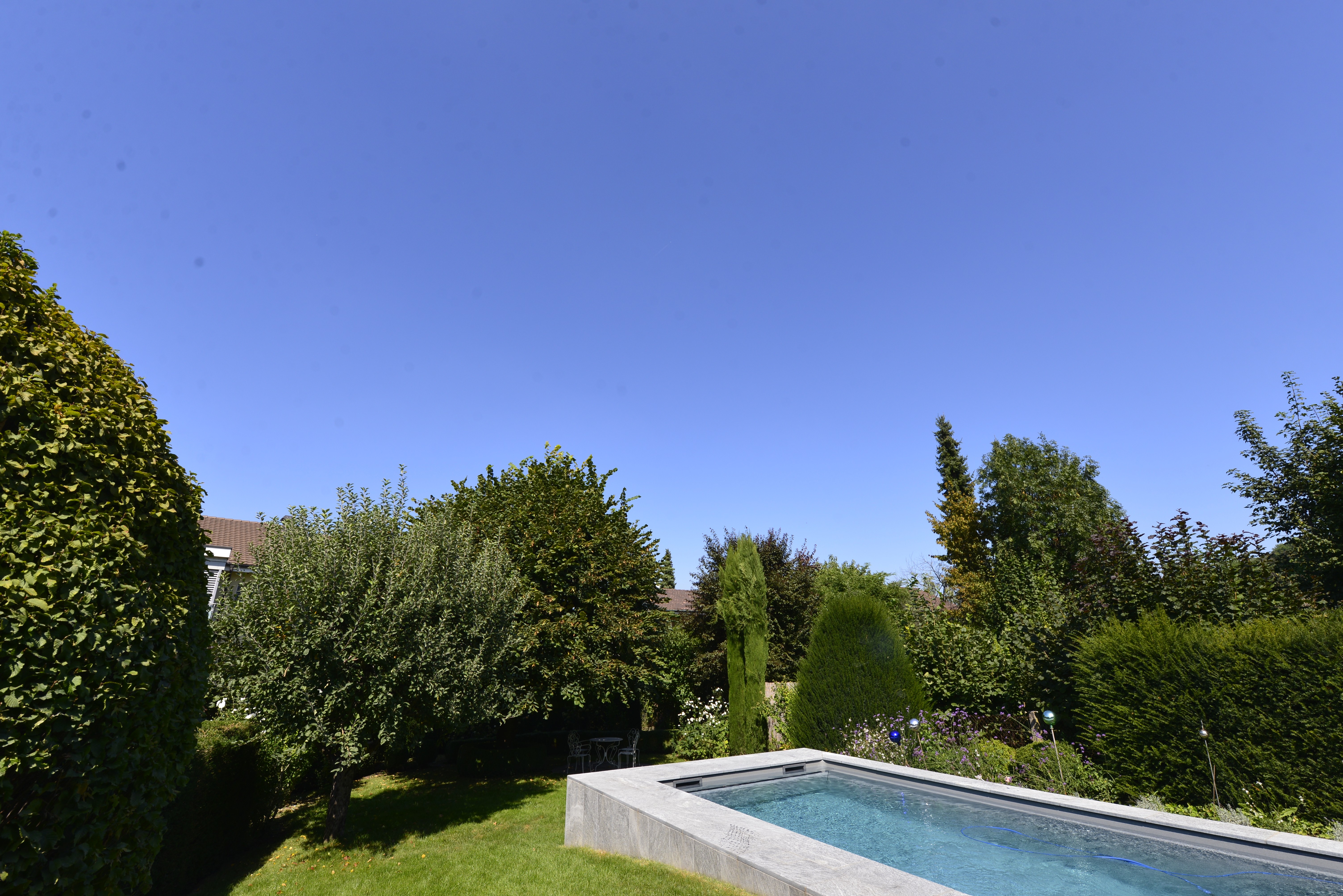 Bei diesem Projekt war das Terrain abfallend. Der Wunsch der Bauherrschaft war es, das Niveau der bestehenden Terrasse aufzunehmen und eine klare, einheitliche Ebene zu schaffen.