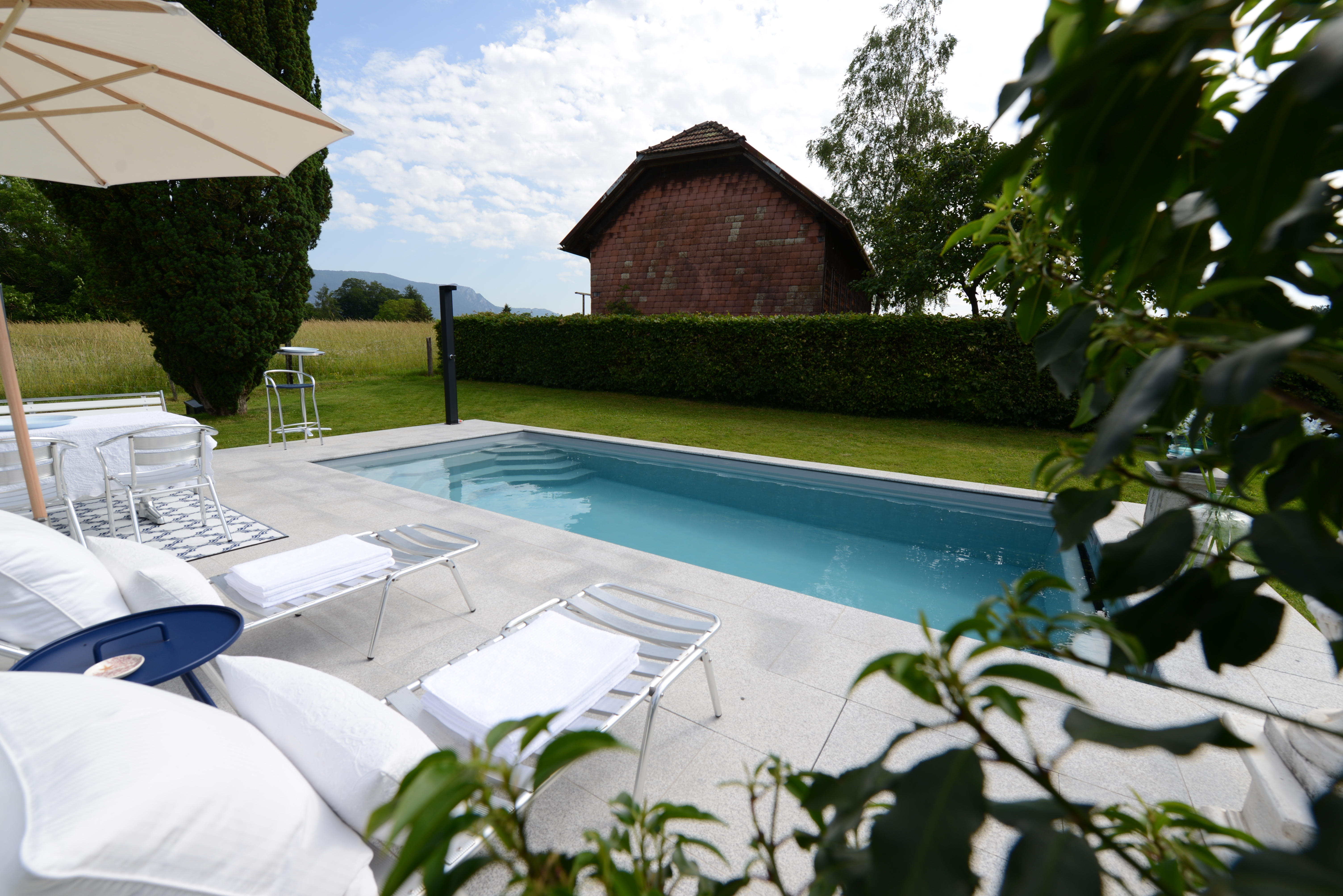 Dieses Projekt im Kanton Solothurn zeigt, wie ein Schwimmbad einen Garten verwandeln kann. Aus einem bislang leeren Aussenbereich wurde ein lebendiger Treffpunkt, an dem man schwimmt, entspannt und gemeinsame Momente geniesst. Die sorgfältig ausgewählten Platten ergänzen den Bereich harmonisch, verleihen dem Garten Struktur und setzen den Poolbereich stilvoll in Szene.