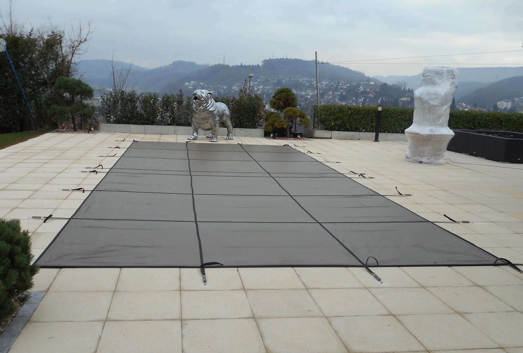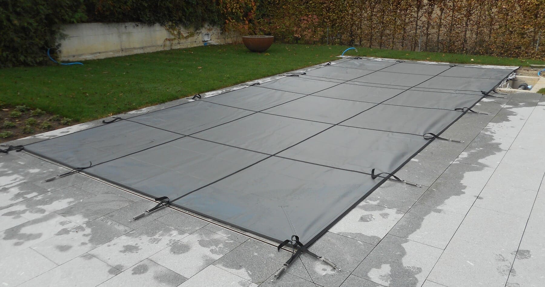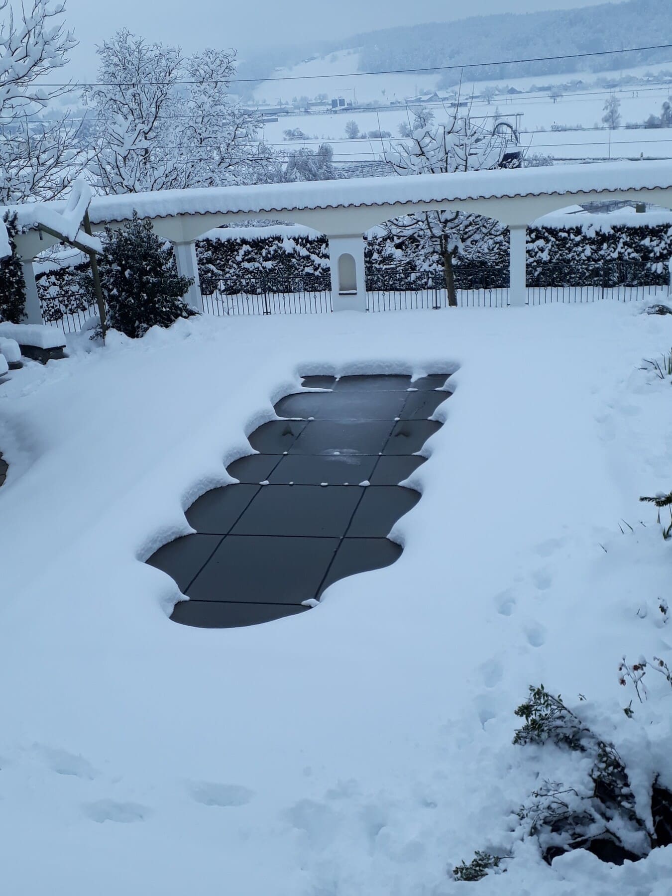 Um den Pool im Winter vor Verschmutzungen zu schützen, empfehlen wir den Einsatz eines Winternetzes. Das Becken wird vor Verunreinigungen wie Laub, Insekten und anderen Verschmutzungen bewahrt und ist kindersicher zertifiziert. Die Solarlamellen sind während dieser Zeit im Schacht geparkt und so vor Verunreinigungen geschützt, dies verlängert die Lebensdauer der Lamellen massgebend.