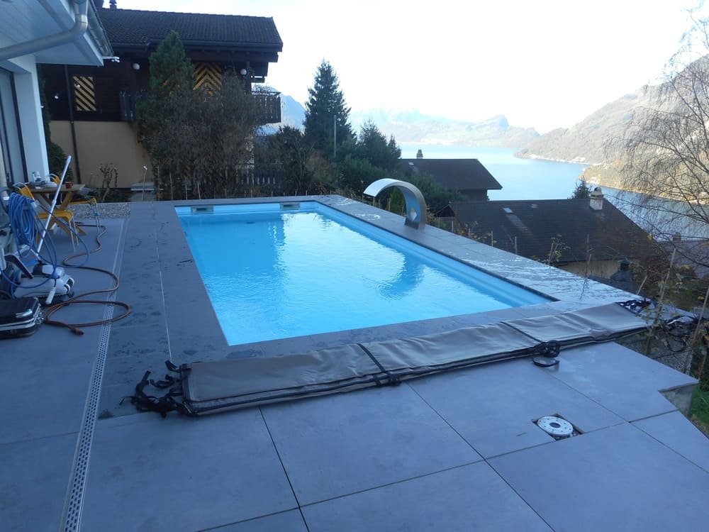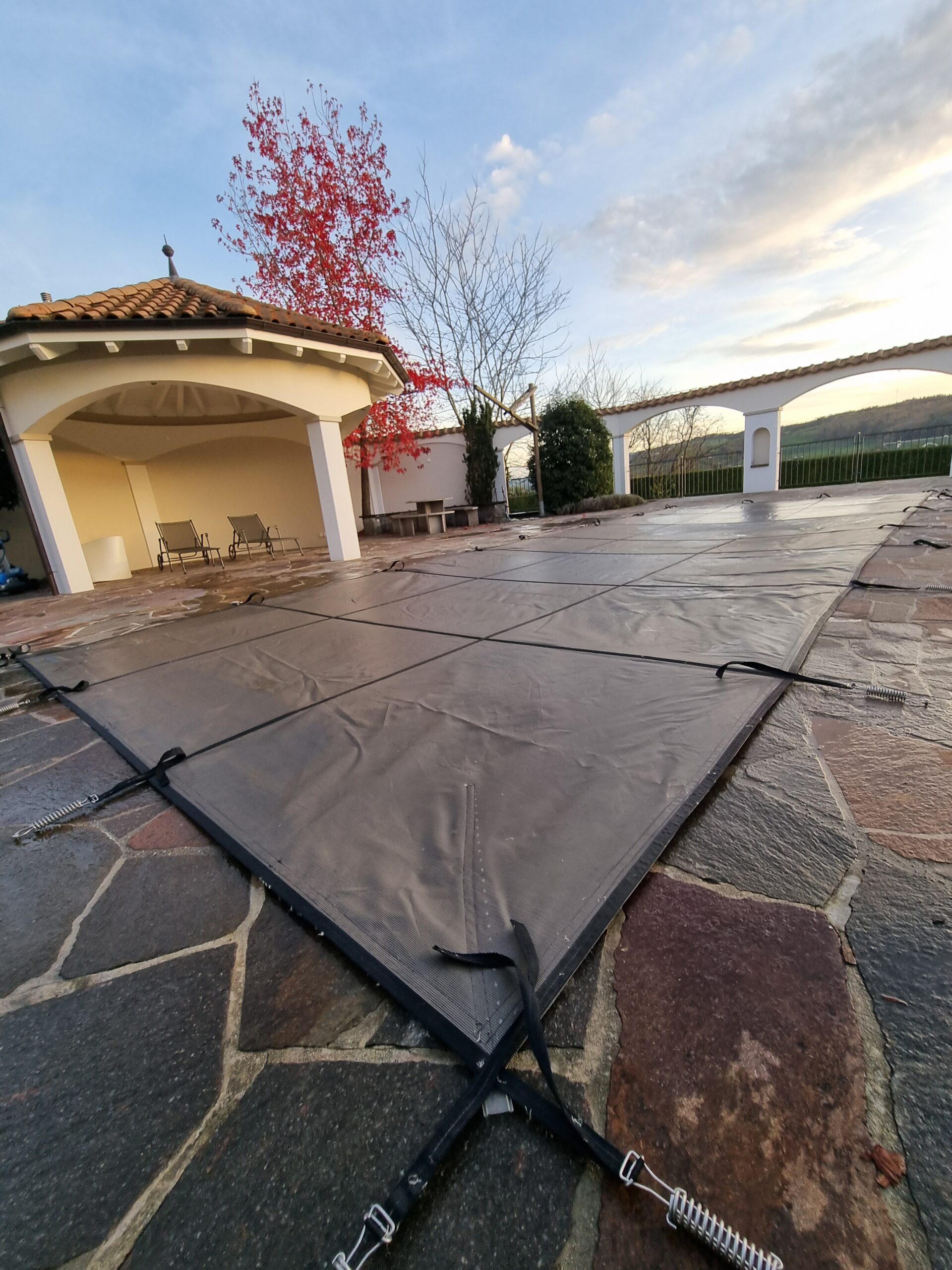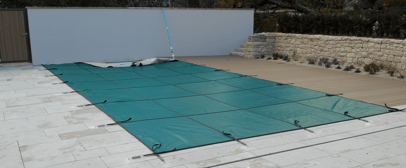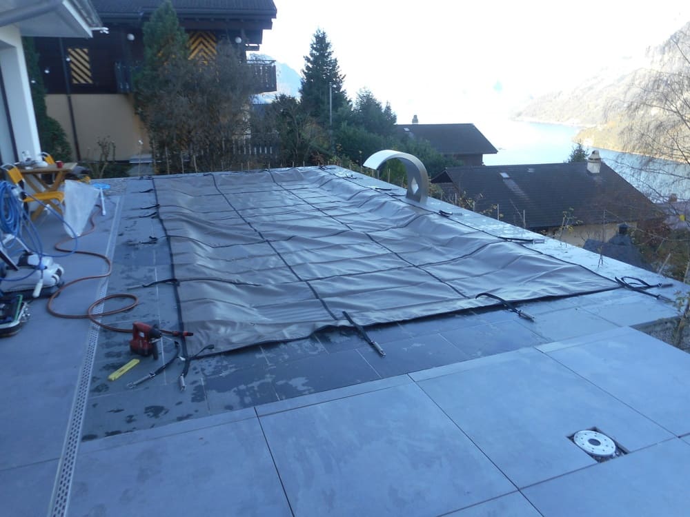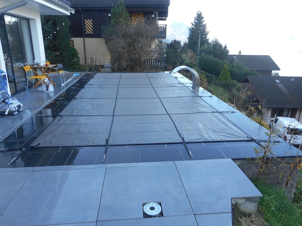 Um den Pool im Winter vor Verschmutzungen zu schützen, empfehlen wir den Einsatz eines Winternetzes. Das Becken wird vor Verunreinigungen wie Laub, Insekten und anderen Verschmutzungen bewahrt und ist kindersicher zertifiziert. Die Solarlamellen sind während dieser Zeit im Schacht geparkt und so vor Verunreinigungen geschützt, dies verlängert die Lebensdauer der Lamellen massgebend.